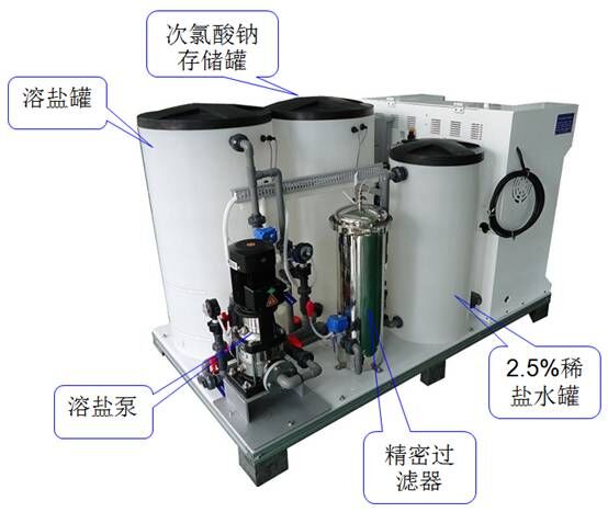 置,是由软水装置、溶盐装置、过滤装置、稀盐水配比装置、电解电极总成、